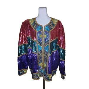 Vintage Marisol Sequin Artsy Party Statement Embellished Lightweight Jacket