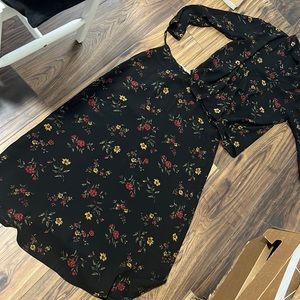 Shoshanna Amora 100% Silk Chiffon Dress Black Floral Ruffle Size 4 Fit & Flare