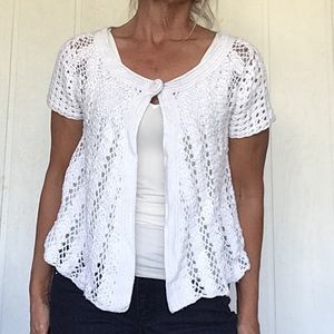 02119 Needleworks Avenue Design tan cotton 3/4 sleeve cardigan 22 / 24