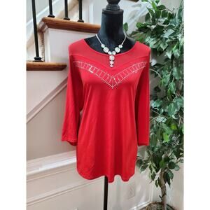 Suzie In The City Womens Solid Red Polyester Cold Shoulder Sleeve Blouse Size 2X