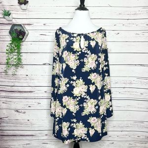 SAGE Navy Blue & Purple Floral Split Sleeve Dress Size Medium