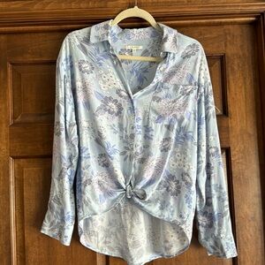 Talbots Large Blue Lightweight Cotton Blouse Coastal Spring
