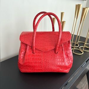 Patricia Nash Notely Croco Embossed Leather Flap Satchel-Papaya