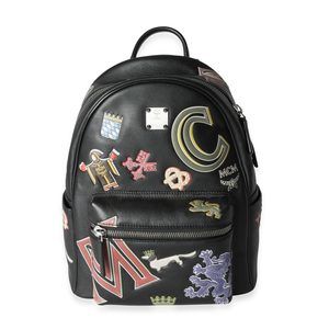 MCM Black Leather Victory Patch Stark Backpack