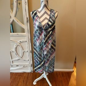 Chico’s Size 1 sheer paisley pull over top. Roll tab sleeves. Hi-lo hem. V-neck