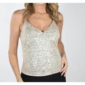 ❤️2/$18 Dana Buchman Womens Ivory Sequin Top Sleeveless Spread Collar Tank 3X