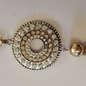 Talbots Double Adjustable Slider Tassle Chain Pendant Necklace Gold White Cream