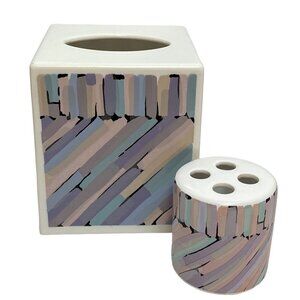 Croscill Minérale Ceramic Tissue Box Cover and Soap Dish Set Hand Painted Green
