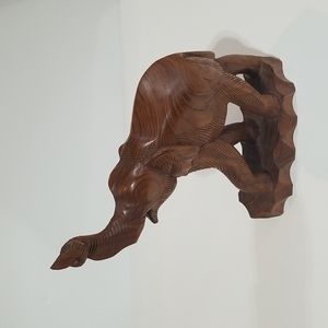 VINTAGE 14" Wooden Chunky Trunks Up Elephant on Attached Base