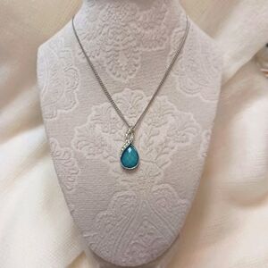 Turquoise & silver cross chain necklace 34 - 37” long fashion