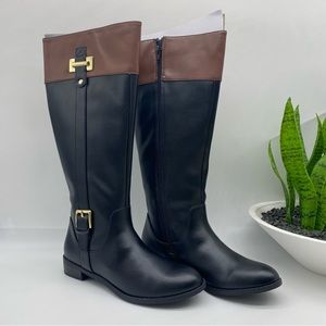 KAREN SCOTT Deliee2 Riding Boots in black and cognac faux leather size 6.5M NEW