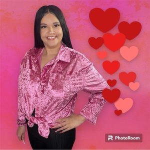 Sizes S-XL Valentine’s Day Crushed Velvet Womens Hot Pink Blouse S-XL