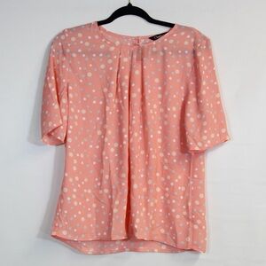 Chadwicks Peach Short Sleeve Blouse w/Grey White Polka Dots NWOT