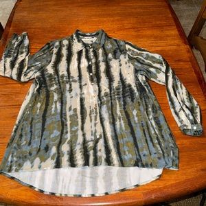 Jones New York Striped Short Sleeve Tunic Shirt - Size Large - Blue Yellow White