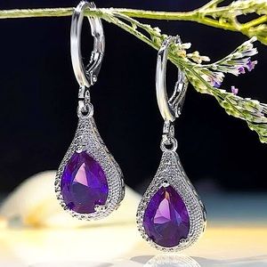 NEW STERLING SILVER AMETHYST DANGLE EARRINGS