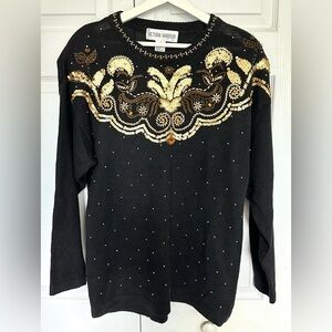 Susan Bristol Sweater Black Embroidered Vintage Cardigan, Beading, Size M