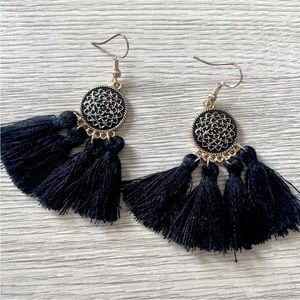 🐚 Black boho fringe earrings