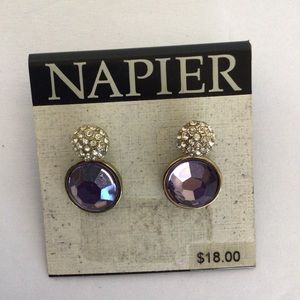 Napier Signed Button Earrings- Red Gold Post Back Vintage