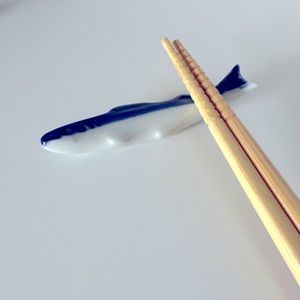 2 Japanese porcelain chopstick holders fish