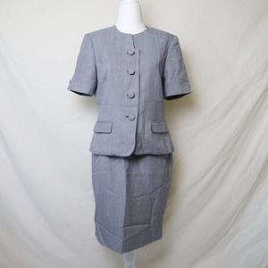 Vintage 90s Emily navy blue and white checker print skirt suit set 8P