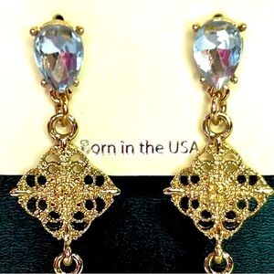 Gold Teardrop Earrings Rhinestone Dangle Statement Jewelry Fashion