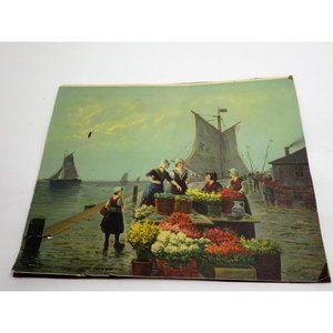 The Flower Mart Print 1936 Dutch Pier Warf Vintage Distressed