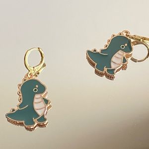 Green Dino gold enamel earrings