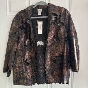 NWT Chico’s Metallic Open Weave Embroidered Jacket, Size 12