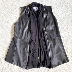 Joseph Ribkoff Faux Leather Vest with removable zippered scarf, black, 10 NEW