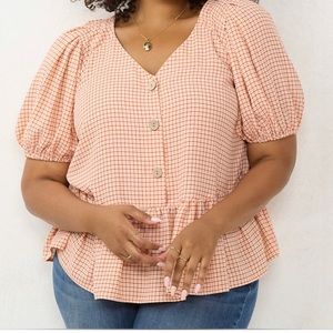 Lauren Conrad V Neck Cropped Ruffled Blouse XXL Orange Button Down Peplum Flowy