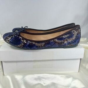 J Crew Factory Sz 7 Ballet Flats Slip On Shoes Snakeskin Print Black Cream