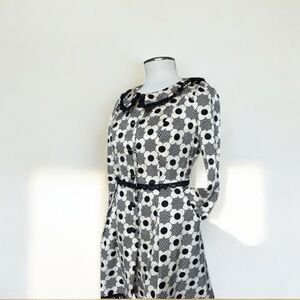 vtg DEPECHE MODE sz 4 Spring Summer Coat Lined Fit n Flare Polka Dots Aqua Blue