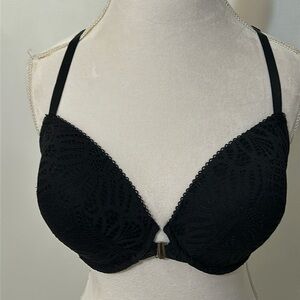 Victoria's Secret PushUp Body By Bra Black Cream 34D Floral Underwire Rhinestone