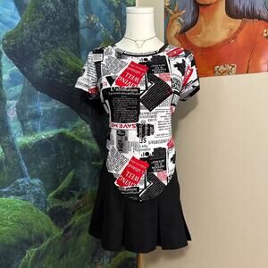 INC Black & White Paisley Ruffle Hem Top Boho Y2K Size Medium