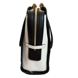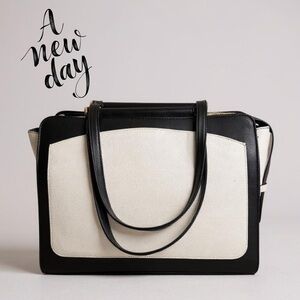 Discover the perfect blend of style and functionality with this black and white satchel from A New Day. Featuring a striking color-block design, this bag offers a sophisticated look with its structured form and sturdy handles. Ideal for any occasion, it effortlessly complements a variety of outfits.