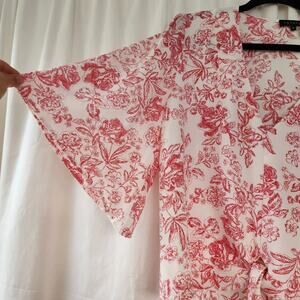 1. State White & Pink Floral Print Tie Hem Wide Sleeve Blouse XL Women’s Toile