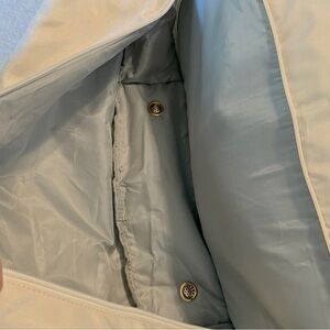 This elegant cream gym bag is perfect for travel, gym, and yoga. Made from high-quality nylon, it offers durability and water resistance. The spacious interior and multiple functional pockets make it ideal for organizing your essentials.