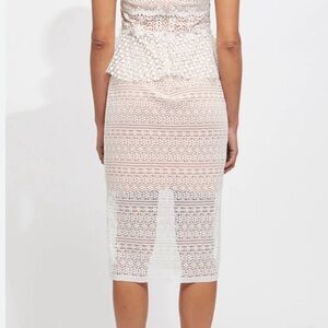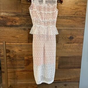 Go out with the girls in the Ramona Lace Jersey Dress. It features a form-fitting silhouette, all-over lace, mesh inserts at the waist and midi length. Size 4, NWT, $158 retail.