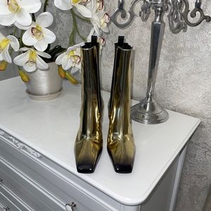 $1,650 Prada Gold Metallic Brushed Calf Leather Chelsea Boots Sz 38 AUTHENTIC😍