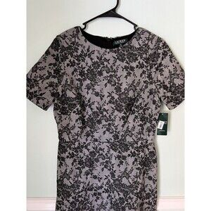 $180 Ralph Lauren Women's Black Pembrook Floral Knit Baba A-Line Day Dress Sz 10