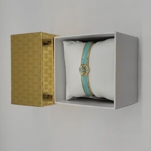 1834- MICHAEL Michael Kors Haute Gold Tone AQUA Enamel Bangle Bracelet NWT