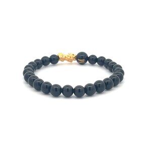 18K Gold Pixiu Piyao Bracelet Natural Gemstones Onyx 6mm Elastic Bracelet Letter
