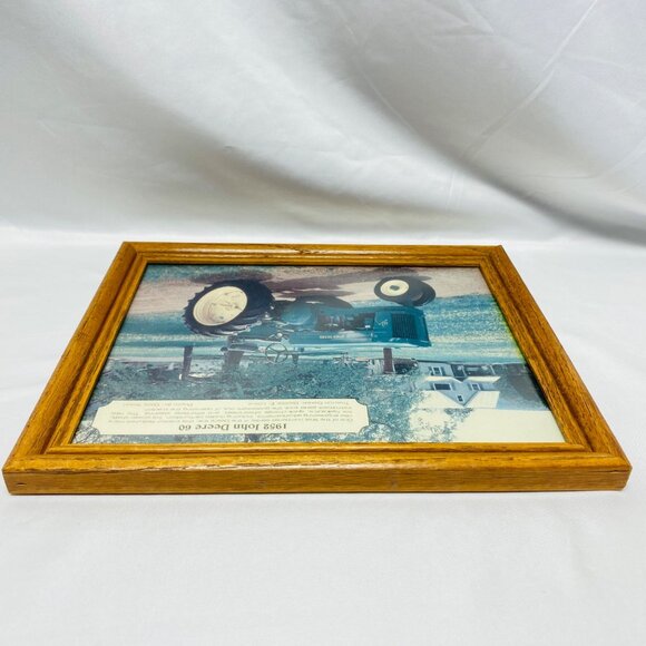 This framed print showcases the iconic 1952 John Deere 60 tractor, offering a nostalgic glimpse into agricultural history. The oak wood frame adds a classic touch.