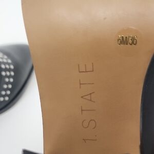 1.state Lon mule, black genuine leather, studded, heel height ~ 2.25”. From Nordstrom Size 6 M. In excellent used condition. Step out in style with these chic black studded mules. Perfect for any occasion, these shoes offer both comfort and elegance.