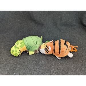 2 FLIP-A-ZOO PLUSH 5.5" THEODORE TIGER & EMMA ELEPHANT Gildy Tiger & Toby Turtle