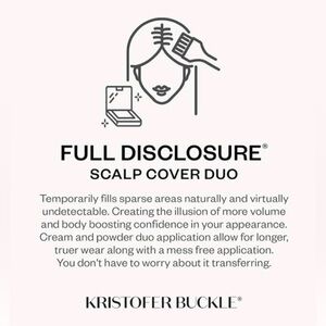 2 KRISTOFER BUCKLE Full Disclosure Scalp Cover Duo Camouflaging Cream Conceals Sparse, Thinning Hair & Bald Spots in black new