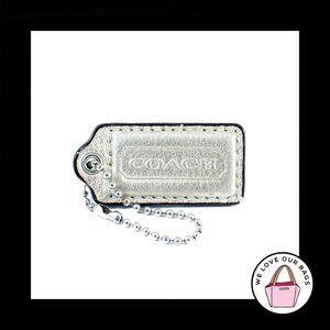 2" Medium COACH SILVER LEATHER Nickel Key Fob Bag Charm Keychain Hang Tag