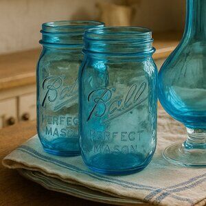 2 Vintage 1913- 1915 Mason Jar Heritage Collection Limited Edition 100 Years, Vintage Blue Ball Mason Jars Set,  Pint Size Blue Glass Mason Jar  Cobalt Blue Mason Jars