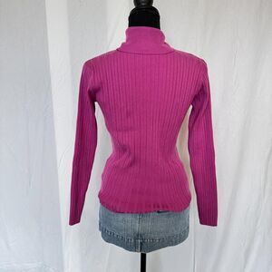 2000s Fuchsia Cableknit Turtleneck Sweater \ Y2K Sweater