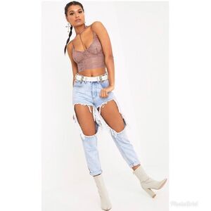 2/$30 Prettylittlething Indya Truffle Sheer Lace Choker Strap Crop Top Size US 0